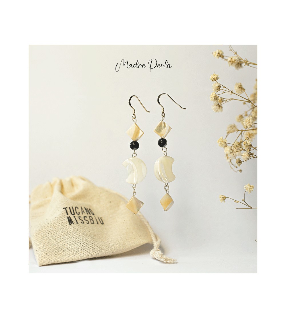 Elaborados artesanalmente en plata de ley 925. Onix. Piedra de origen marino que atrae suerte y felicidad. La madreperla es un símbolo de lujo y prosperidad. Protectora de las relaciones de pareja ya que atrae mucho amor