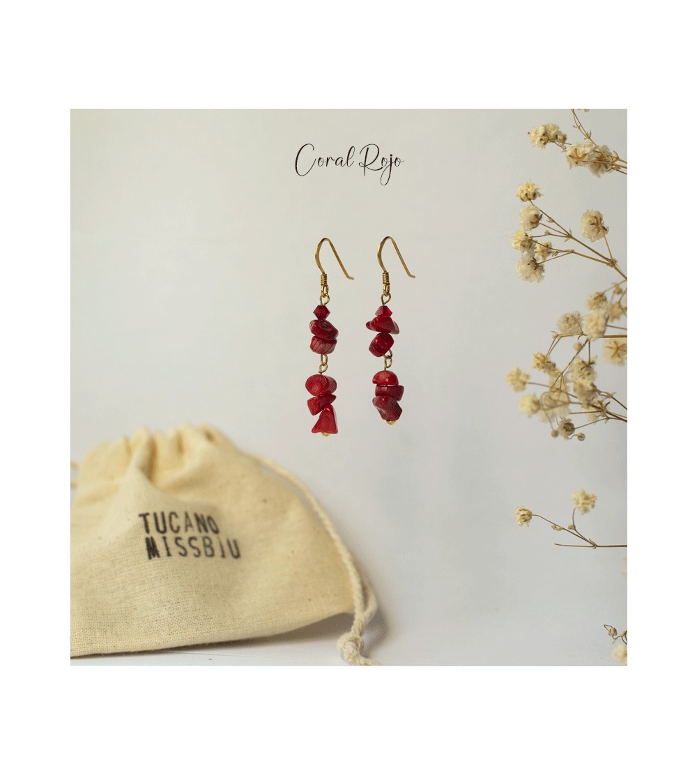 Elaborados artesanalmente en plata de ley 925 bañado en Oro 18k. Coral Rojo es una gran piedra protectora contra el mal de ojo, ahuyenta la negatividad y las malas energías. Se la asocia con la pasión y la alegría. Ligada al chakra 1 raíz.